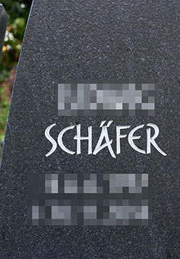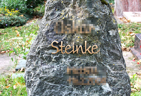Durch die Gestaltung einer Inschrift erhält der Grabstein seine Identität. Diese kann handwerklich gehauen oder als Metallschrift gestaltet sein.